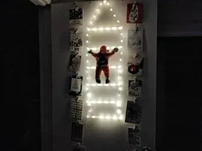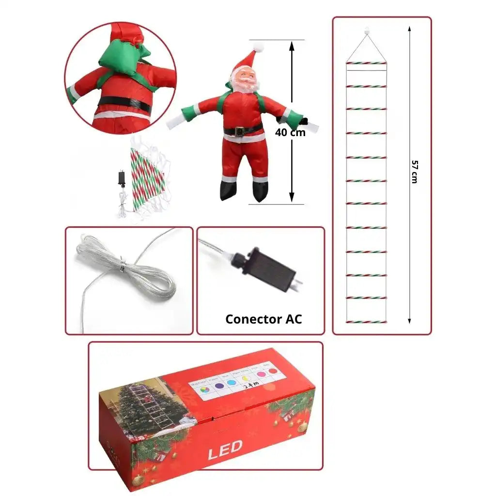 Esta escalera decorativa acompañada de un alegre Papá Noel de 40 cm que parece escalar, es la opción perfecta para decorar cualquier espacio.
