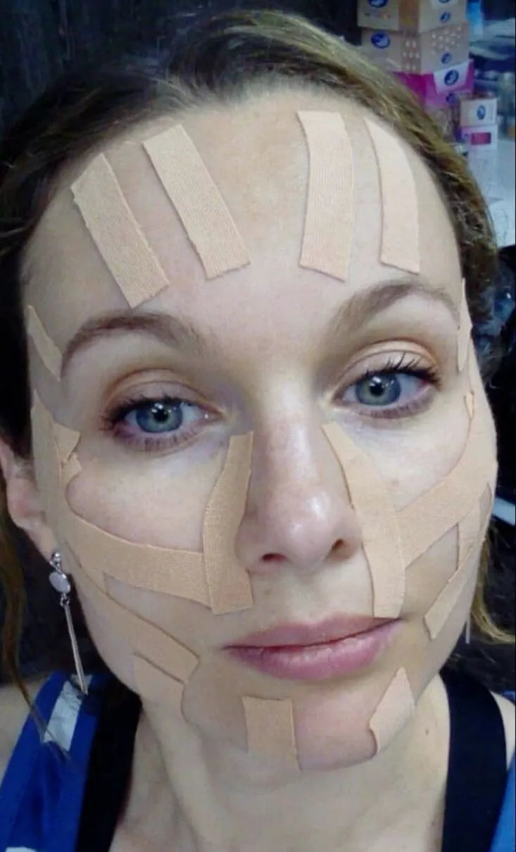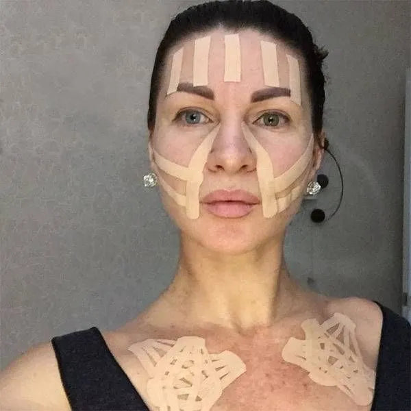 Nuestra cinta kinesiology está especialmente formulada para levantar la piel, mejorar la circulación y reducir la apariencia de marcas de expresión, manteniéndose adherida incluso con sudor o ducha.